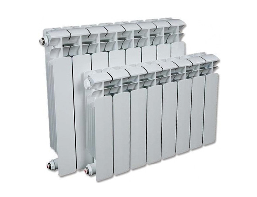 Биметаллические радиаторы состоят из секций, соединённых между собой при помощи ниппелей. Специальные уплотнительные прокладки обеспечивают герметичность батареи. Своё название биметаллические радиаторы получили за счёт использования в конструкции сплава алюминия, обеспечивающего высокую теплоотдачу. Сам же сердечник секции представляет собой конструкцию из стальных коллекторов.